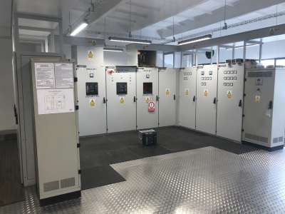 - prefabrykacja, dostawa i montaż Rozdzielnicy Głównej, dwusekcyjnej z polem sprzęgła oraz układem samoczynnego załączenia rezerwy z funkcją pożarowego wyłączenia na poziomie nN i SN, diagnostyką błędów, analizatorami sieci oraz dialogiem operatorskim, wyposażona w układ programowalnego logicznego kontrolera (PLC) z podtrzymaniem redundantnego zasilania sterującego (230VAC oraz 24VDC) z wykonaniem własnego oprogramowania sterującego i wizualizacyjnego oraz realizację telemetrii,