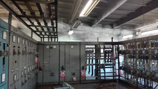 - demontaż istniejącej rozdzielnicy dwusekcyjnej (2500A) z polem sprzęgła wraz z układem samoczynnego załączenia rezerwy (SZR) czterdziestoma ośmioma (2x24) polami odpływowymi (demontaż z zapewnieniem normalnej pracy czynnego obiektu) oraz demontaż mostów szynowych,